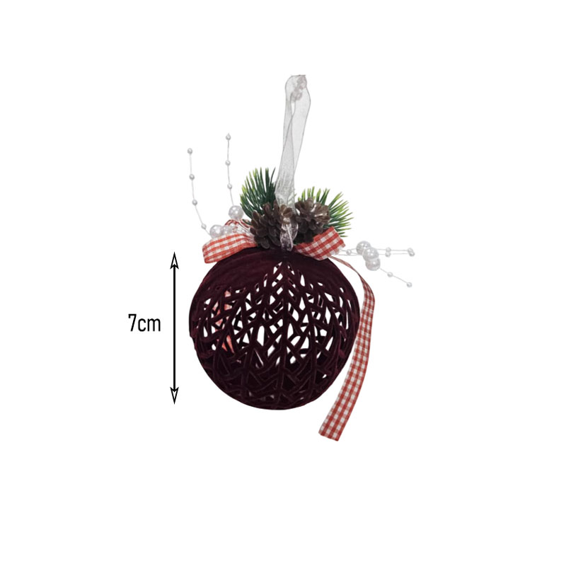 Η βελούδινη χριστουγεννιάτικη μπάλα είναι ένα κομψό και παραδοσιακό στολίδι που θα δώσει μια ζεστή και φυσική πινελιά στο δέντρο ή τη διακόσμησή σας. Διαθέτει λεπτομέρειες με κουκουνάρι, πρασινάδα, πέρλες και καρό κορδέλα για ένα ιδιαίτερα εορταστικό αποτέλεσμα.