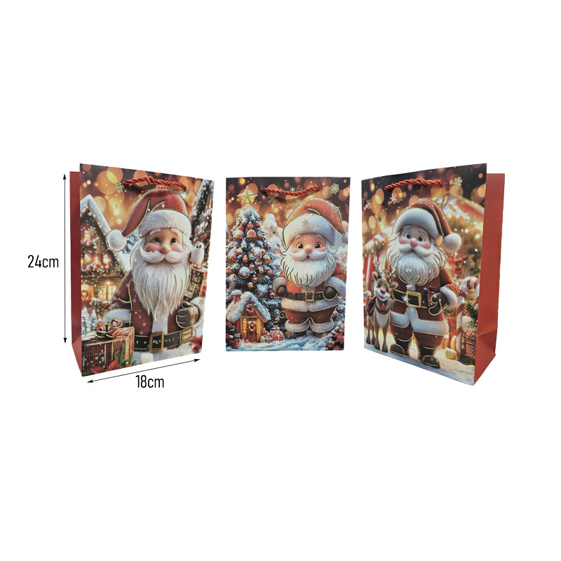 Χριστουγεννιάτικη Σακούλα Δώρου με Σχέδιο Άγιο Βασίλη 24x18cm 12τμχ – Christmas Gift Bag 12pcs