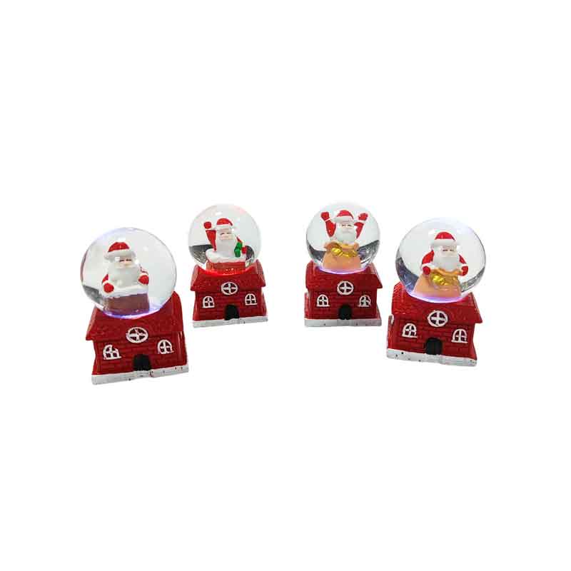 Χριστουγεννιάτικη χιονόμπαλα με βάση σε σχήμα σπιτιού και φιγούρες Άγιου Βασίλη. Όταν την κουνάτε, το εσωτερικό γεμίζει με “χιόνι” δημιουργώντας μια μαγική, γιορτινή ατμόσφαιρα. Ύψος: 7.5cm. Τα σχέδια είναι τυχαίας επιλογής και αποστέλλονται ανάλογα με τη διαθεσιμότητα.