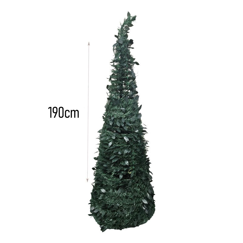 Δημιουργήστε μια γιορτινή ατμόσφαιρα με το κωνικό χριστουγεννιάτικο δέντρο ύψους 190cm σε φυσικό πράσινο χρώμα. Ο ιδιαίτερος σχεδιασμός του προσδίδει κομψότητα και μοντέρνο στυλ, ενώ τα πλούσια φύλλα του αποτελούν την τέλεια βάση για κάθε στολισμό. Είναι ιδανικό για το σπίτι, το γραφείο ή καταστήματα που θέλουν να εντυπωσιάσουν με ένα ξεχωριστό διακοσμητικό στοιχείο. Το δέντρο είναι εύκολο στην αποθήκευση, καθώς διπλώνει ώστε να καταλαμβάνει ελάχιστο χώρο όταν δεν χρησιμοποιείται.