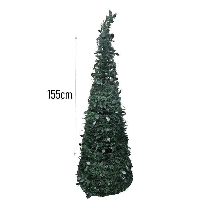 Δημιουργήστε μια γιορτινή ατμόσφαιρα με το κωνικό χριστουγεννιάτικο δέντρο ύψους 155cm σε φυσικό πράσινο χρώμα. Ο ιδιαίτερος σχεδιασμός του προσδίδει κομψότητα και μοντέρνο στυλ, ενώ τα πλούσια φύλλα του αποτελούν την τέλεια βάση για κάθε στολισμό. Είναι ιδανικό για το σπίτι, το γραφείο ή καταστήματα που θέλουν να εντυπωσιάσουν με ένα ξεχωριστό διακοσμητικό στοιχείο. Το δέντρο είναι εύκολο στην αποθήκευση, καθώς διπλώνει ώστε να καταλαμβάνει ελάχιστο χώρο όταν δεν χρησιμοποιείται.