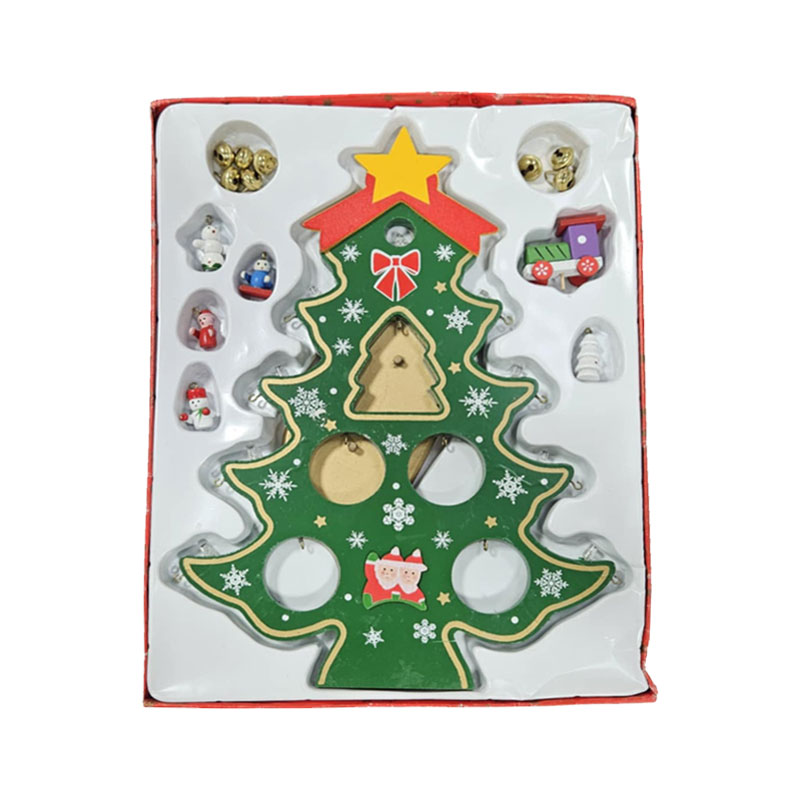 Χριστουγεννιάτικο ξύλινο διακοσμητικό δέντρο με στολίδια και φωτισμό 28CM