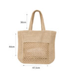Στυλάτη πλεκτή τσάντα θαλάσσης σε φυσική μπεζ απόχρωση, ιδανική για καλοκαιρινές εμφανίσεις και καθημερινή χρήση. Διαθέτει ενσωματωμένη διχτυωτή εξωτερική τσέπη που προσφέρει επιπλέον πρακτικότητα για εύκολη πρόσβαση σε μικροαντικείμενα.