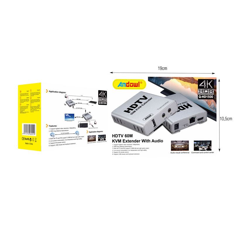 Andowl Ενισχυτής Σήματος HDMI HDTV 60M Q-HD1500 - KVM Extender With Audio