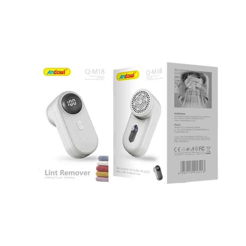 Ο επαναφορτιζόμενος αποχνουδωτής Andowl Q-M18 αφαιρεί αποτελεσματικά χνούδι, κόμπους και μικρές ίνες από ρούχα, υφάσματα και υφασμάτινες επιφάνειες, επαναφέροντας την αρχική τους εμφάνιση. Διαθέτει ψηφιακή ένδειξη LED για το επίπεδο μπαταρίας και εργονομικό σχεδιασμό για εύκολη χρήση. Η επαναφορτιζόμενη μπαταρία 2000mAh προσφέρει αυτονομία και πρακτικότητα, ενώ η φόρτιση γίνεται μέσω USB.