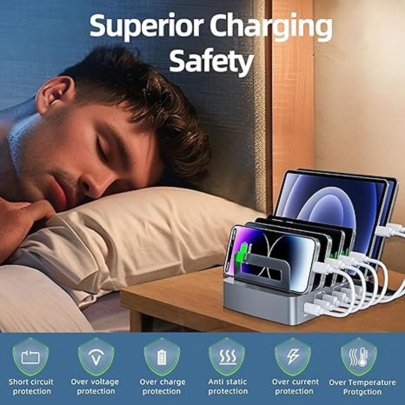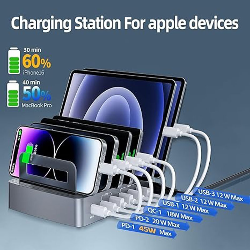 Ο σταθμός φόρτισης Andowl Q-XW78 είναι η ιδανική λύση για όσους θέλουν να φορτίζουν ταυτόχρονα πολλές συσκευές με μέγιστη ταχύτητα και ασφάλεια. Διαθέτει 6 θύρες φόρτισης με προηγμένες τεχνολογίες PD 45W, PD 20W, QC 18W και USB 12W, καλύπτοντας πλήρως τις ανάγκες για κινητά, tablets, laptops και αξεσουάρ.