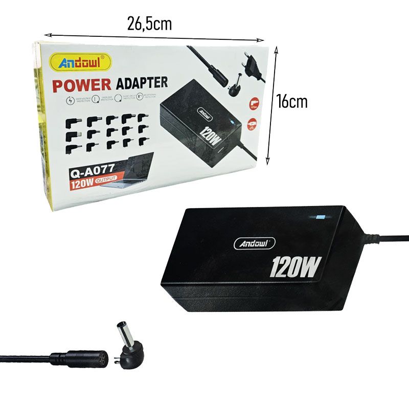 Ο universal φορτιστής laptop Andowl Q-A077 προσφέρει μια αξιόπιστη και ευέλικτη λύση φόρτισης για ένα ευρύ φάσμα φορητών υπολογιστών. Με ισχύ εξόδου 120W, είναι ικανός να τροφοδοτήσει αποτελεσματικά πολλές συσκευές. Συνοδεύεται από πολλαπλούς αντάπτορες, διασφαλίζοντας συμβατότητα με τις περισσότερες μάρκες και μοντέλα laptops, καθιστώντας τον ιδανική επιλογή για όσους διαθέτουν διαφορετικές συσκευές ή χρειάζονται εφεδρικό φορτιστή.