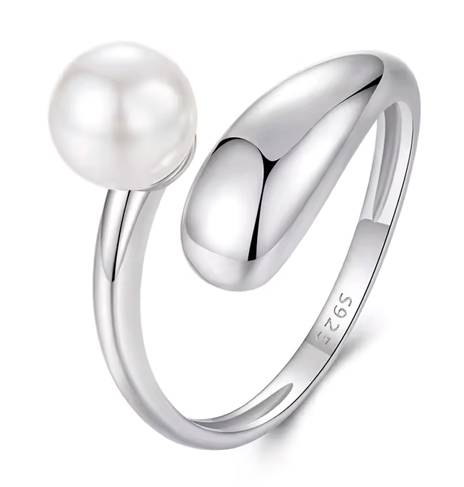 Κομψό δαχτυλίδι της Bamoer, διακοσμημένο με εντυπωσιακή, λευκή πέρλα.