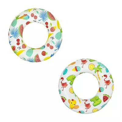Παιδική φουσκωτή σωσίβια κουλούρα διαμέτρου 61 εκ. (24″), ιδανική για παιδιά ηλικίας 3 έως 6 ετών. Διαθέτει χαρούμενο καλοκαιρινό σχέδιο με φρούτα και τροπικά μοτίβα, που την καθιστούν ιδιαίτερα ελκυστική για τους μικρούς κολυμβητές.
