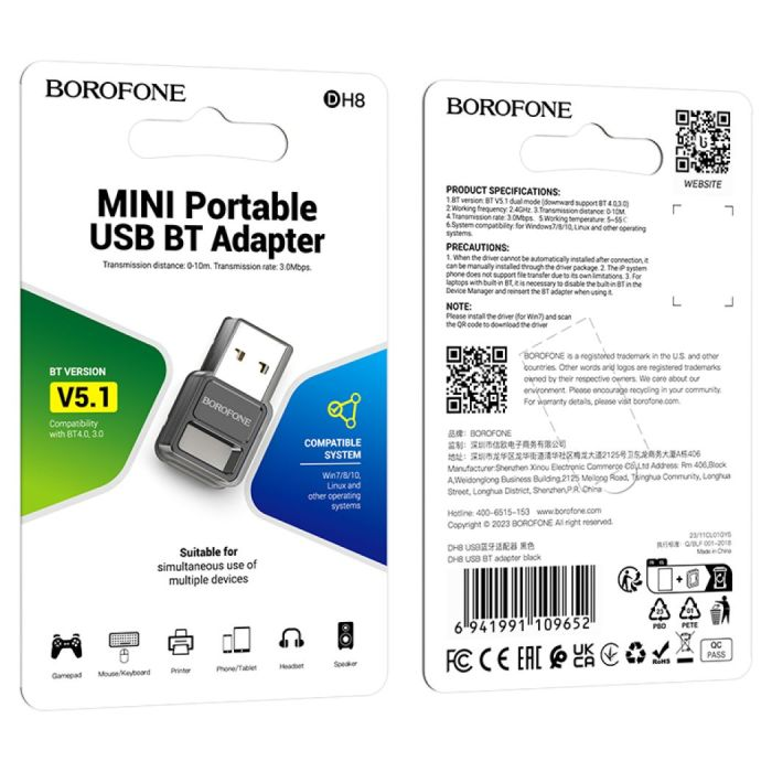 Borofone Adapter DH8 Bluetooth 5.1 – USB