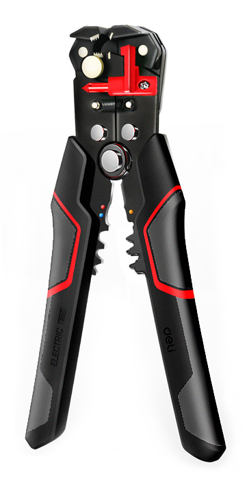 Πολυλειτουργικός αυτόματος απογυμνωτής καλωδίων της Deli ιδανικός για κοπή, απογύμνωση και πρεσάρισμα ακροδεκτών σε καλώδια.