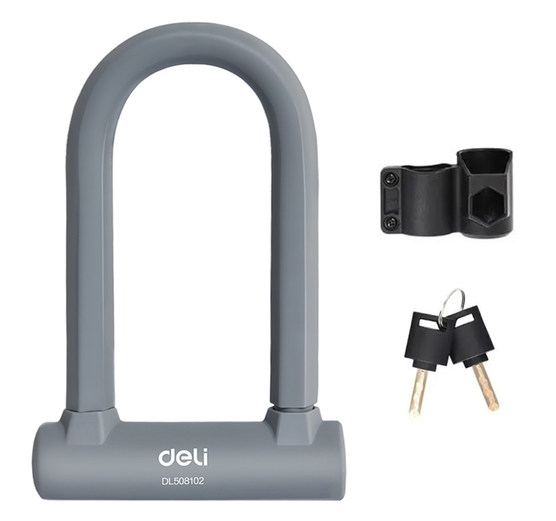 Κλειδαριά πέταλο ποδηλάτου της Deli με ανθεκτική ατσάλινη κατασκευή και εξωτερική επένδυση σιλικόνης, για την προστασία του ποδηλάτου σας από κλοπές.