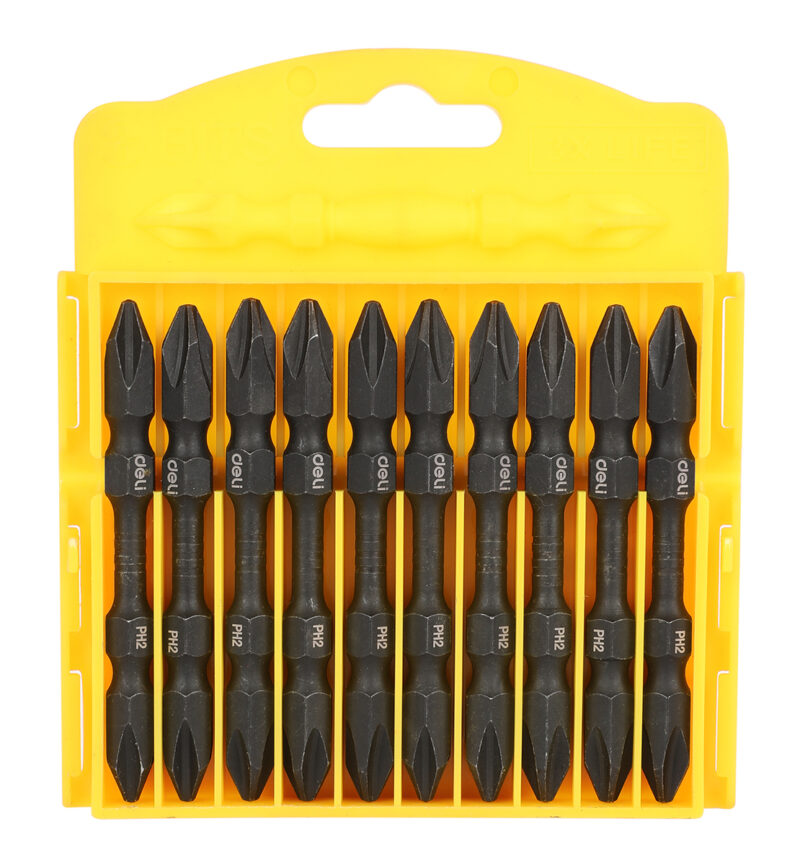 DELI σετ μύτες κατσαβιδιού DL252202 για δραπανοκατσάβιδο διπλή κεφαλή, σταυρωτές, PH2x65mm, 10τμχ