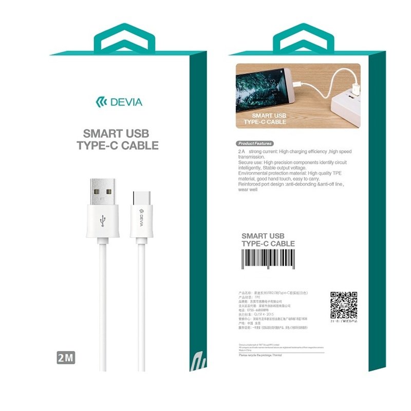 Το universal καλώδιο Devia Smart για τη σύνδεση smartphones σε φορτιστή. Κατάλληλο για φόρτιση μπαταριών σε συσκευές που διαθέτουν βύσμα Type-C.