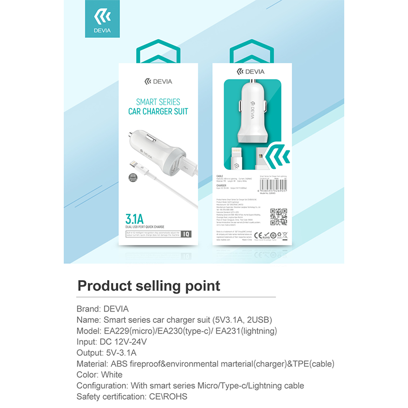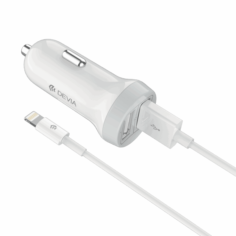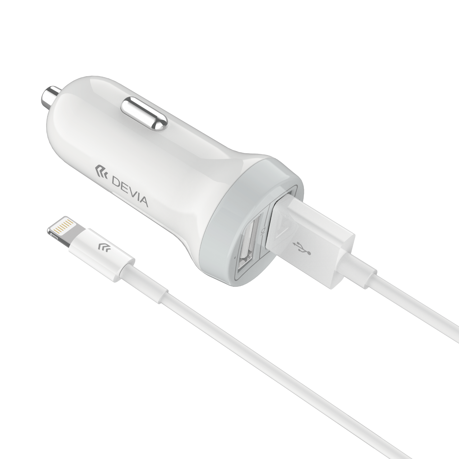 Devia car charger Smart 2x USB 3,1A white + Lightning cable