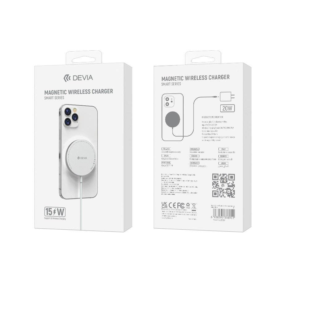 DEVIA Smart is a 15W inductive charger dedicated to devices using a magnetic charger mount. Thanks to this solution, we do not have to worry about whether we have placed the smartphone correctly on the charger. The charger is also compatible with other smartphones that do not use a magnetic mount, just place the smartphone on the lying charger. To obtain the highest wireless charging power, it is recommended to use PD 3.0 / PD 2.0 (20W) or QC 2.0 / QC 3.0 chargers.