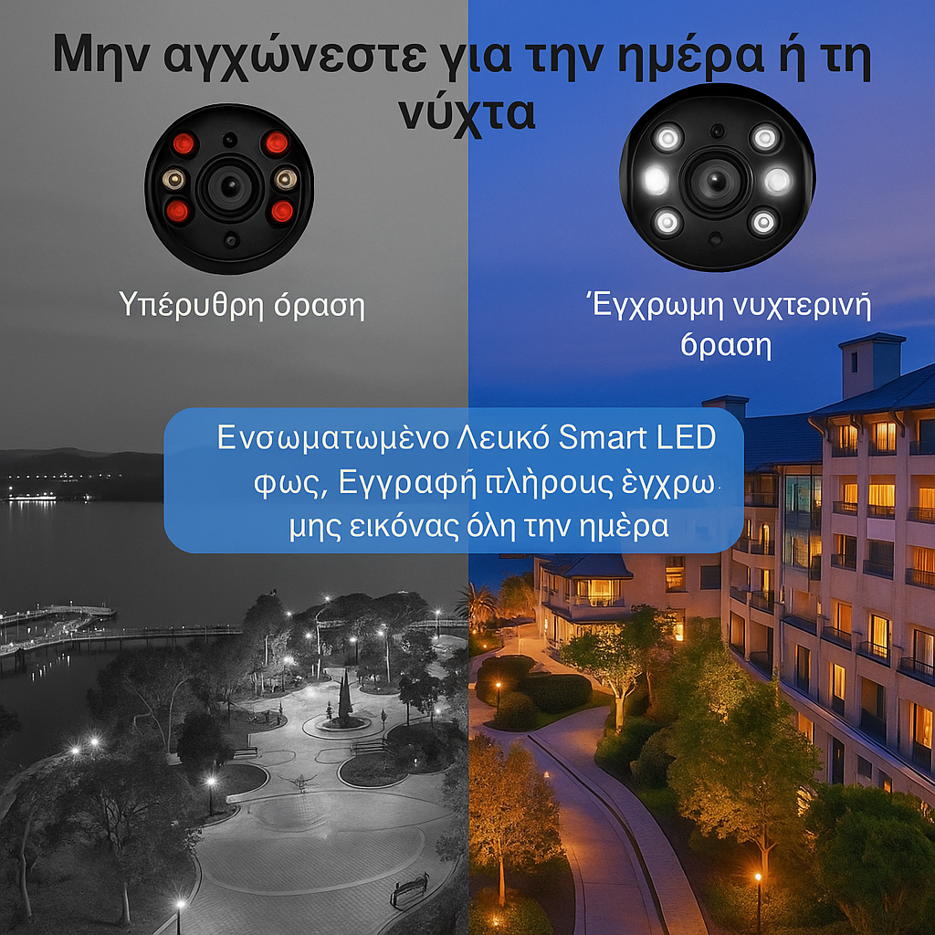 ✔ Έξυπνη Νυχτερινή Όραση – Έγχρωμη ή Υπέρυθρη, με ενσωματωμένα LED