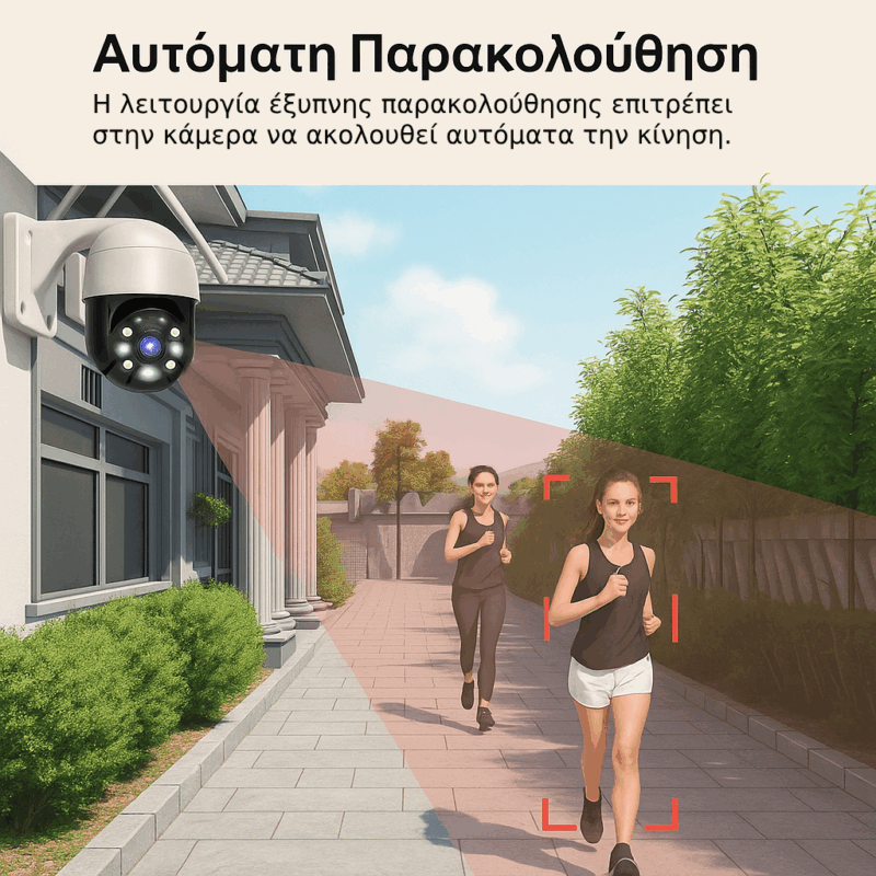 ✔ Αυτόματη Παρακολούθηση – η κάμερα ακολουθεί κινούμενα αντικείμενα
