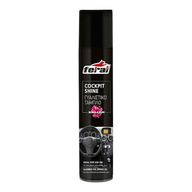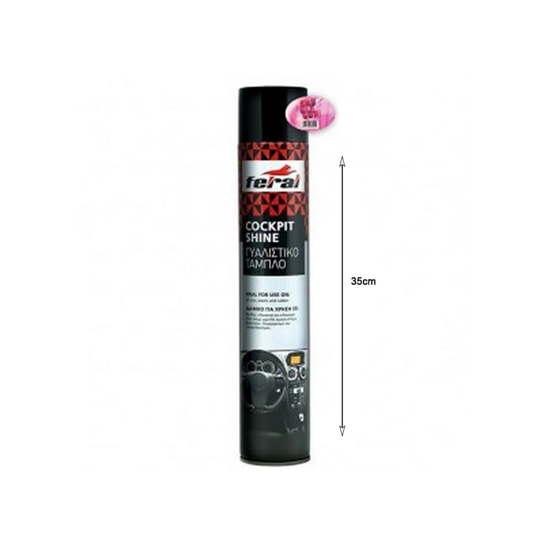 Το γυαλιστικό ταμπλό Feral, είναι ένα προϊόν με μοναδική σύνθεση που γυαλίζει, προστατεύει και συντηρεί τα πλαστικά μέρη του αυτοκινήτου σας χαρίζοντας εκπληκτική λάμψη, και μοναδικό άρωμα. Τα αντιστατικά συστατικά που περιέχει καθώς και οι εξαιρετικής ποιότητος σιλικόνες απωθούν την σκόνη παρατείνοντας έτσι την λάμψη της επιφάνειας. Προστατεύει από το ξεθώριασμα, το σκάσιμο και την αφυδάτωση των εσωτερικών επιφανειών του αυτοκινήτου. Ιδανικό για χρήση σε βινύλια, πλαστικά και ελαστικά μέρη όπως ταμπλό αυτοκινήτων, φορτηγών, λεωφορείων και προφυλακτήρες. Οδηγίες χρήσης: 1)Ανακινήστε καλά το μπουκάλι και έπειτα ψεκάστε ομοιόμορφα την πλαστική επιφάνεια από απόσταση 15-20 εκ. 2)Σκουπίστε το με μαλακό πανί ώστε γυαλίσει. 3)Επαναλάβετε όσο συχνά επιθυμείτε.