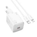 Φορτιστής τοίχου Hoco N40 με θύρα USB-C και υποστήριξη γρήγορης φόρτισης 20 W. Περιλαμβάνεται καλώδιο USB-C – Lightning 1 μέτρου.