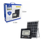 Ισχυρός ηλιακός προβολέας LED 100W, ιδανικός για φωτισμό εξωτερικών χώρων όπως αυλές, κήπους, εισόδους, αποθήκες και χώρους στάθμευσης. Λειτουργεί με ενσωματωμένη ηλιακή ενέργεια μέσω ξεχωριστού φωτοβολταϊκού πάνελ, προσφέροντας αυτόνομη λειτουργία χωρίς κατανάλωση ρεύματος.