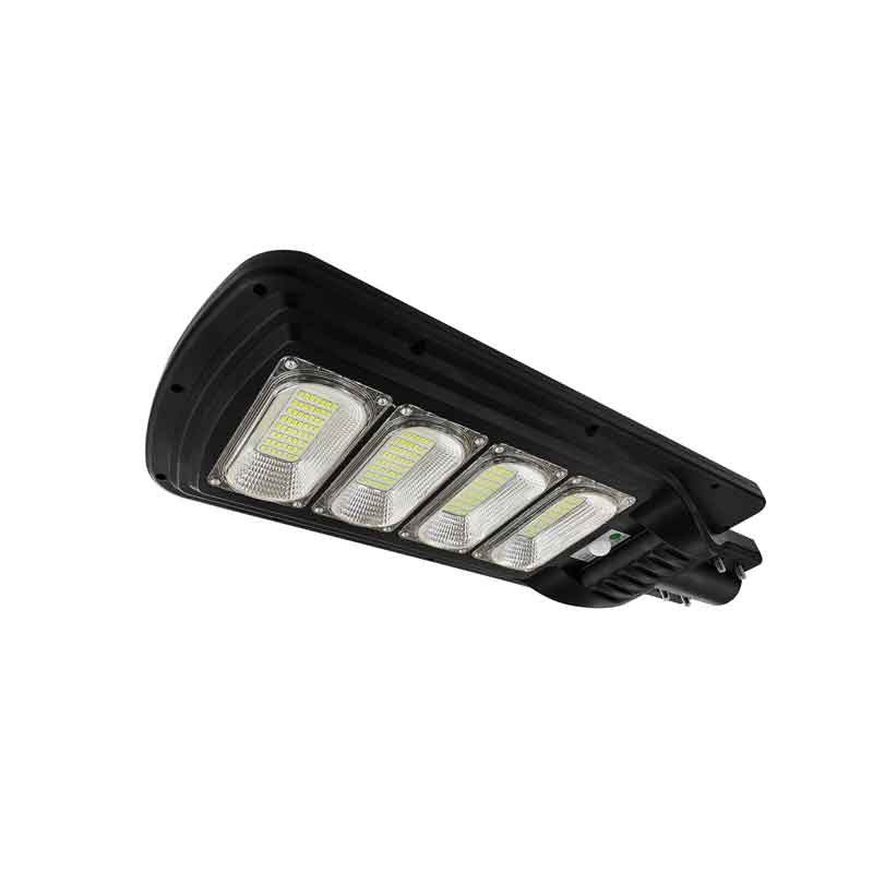 Ηλιακό φωτιστικό δρόμου σε μαύρο χρώμα, που συγκεντρώνει και αποθηκεύει ηλιακή ενέργεια για τη λειτουργία του, ώστε να μη χρειάζεται να συνδεθεί σε παροχή ρεύματος. Διαθέτει ανιχνευτή κίνησης για να ενεργοποιείται όταν εντοπίσει κίνηση εντός της εμβέλειάς του. Περιλαμβάνει τηλεκοντρόλ ώστε να το χειρίζεστε από απόσταση.