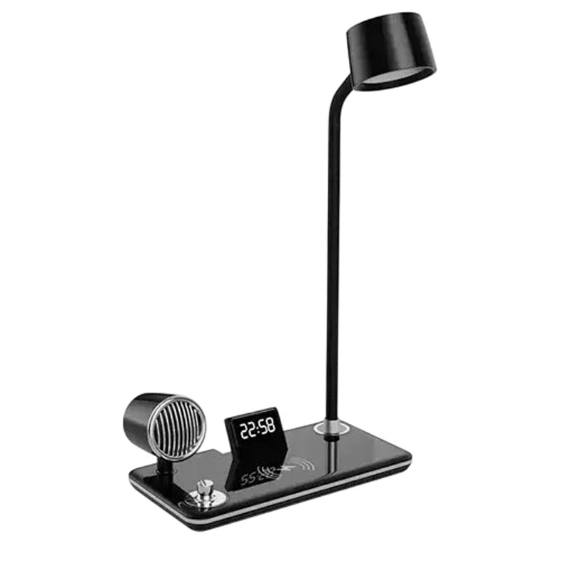 4 λειτουργίες σε μία συσκευή: LED φωτιστικό, ασύρματος φορτιστής, ηχείο Bluetooth, ρολόι