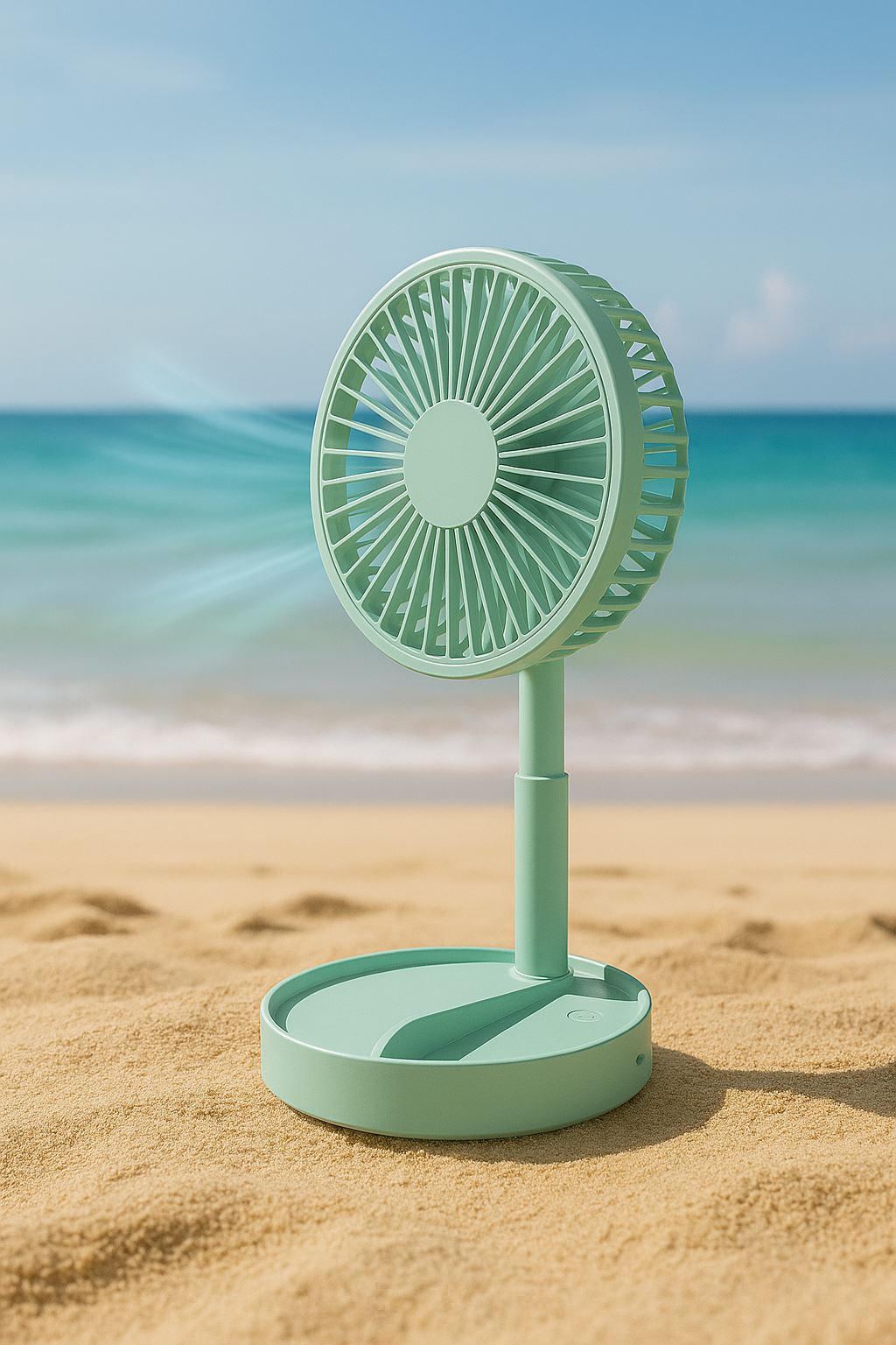 Εξαιρετικά ελαφρύ και συμπαγές μέγεθος. Ιδανικό για μεταφορά στην τσάντα, στο χέρι ή στο γραφείο. Χρησιμοποιείται είτε ως ανεμιστήρας χειρός, είτε τοποθετείται σε επίπεδη επιφάνεια για σταθερή χρήση.