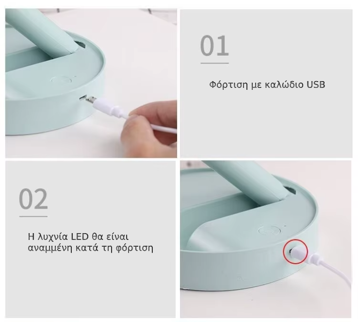 🔌 Φόρτιση μέσω USB από laptop, φορτιστή ή power bank