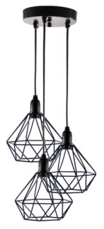 Τρίφωτο κρεμαστό φωτιστικό οροφής σε σχήμα διαμαντιού με προσεγμένο φινίρισμα που θα προσφέρει στον χώρο σας έναν όμορφο τόνο. Το καλαίσθητο σχέδιο του, σε συνδυασμό με το μαύρο του χρώμα του προσδίδει συμβατότητα σε κάθε χώρο, ταιριάζοντας αρμονικά είτε σε μοντέρνο είτε σε πιο παραδοσιακό περιβάλλον. Είναι κατασκευασμένο από μέταλλο και με μεγάλη προσοχή στην λεπτομέρεια, η οποία ολοκληρώνεται από την εξαιρετικής ποιότητας βαφή.