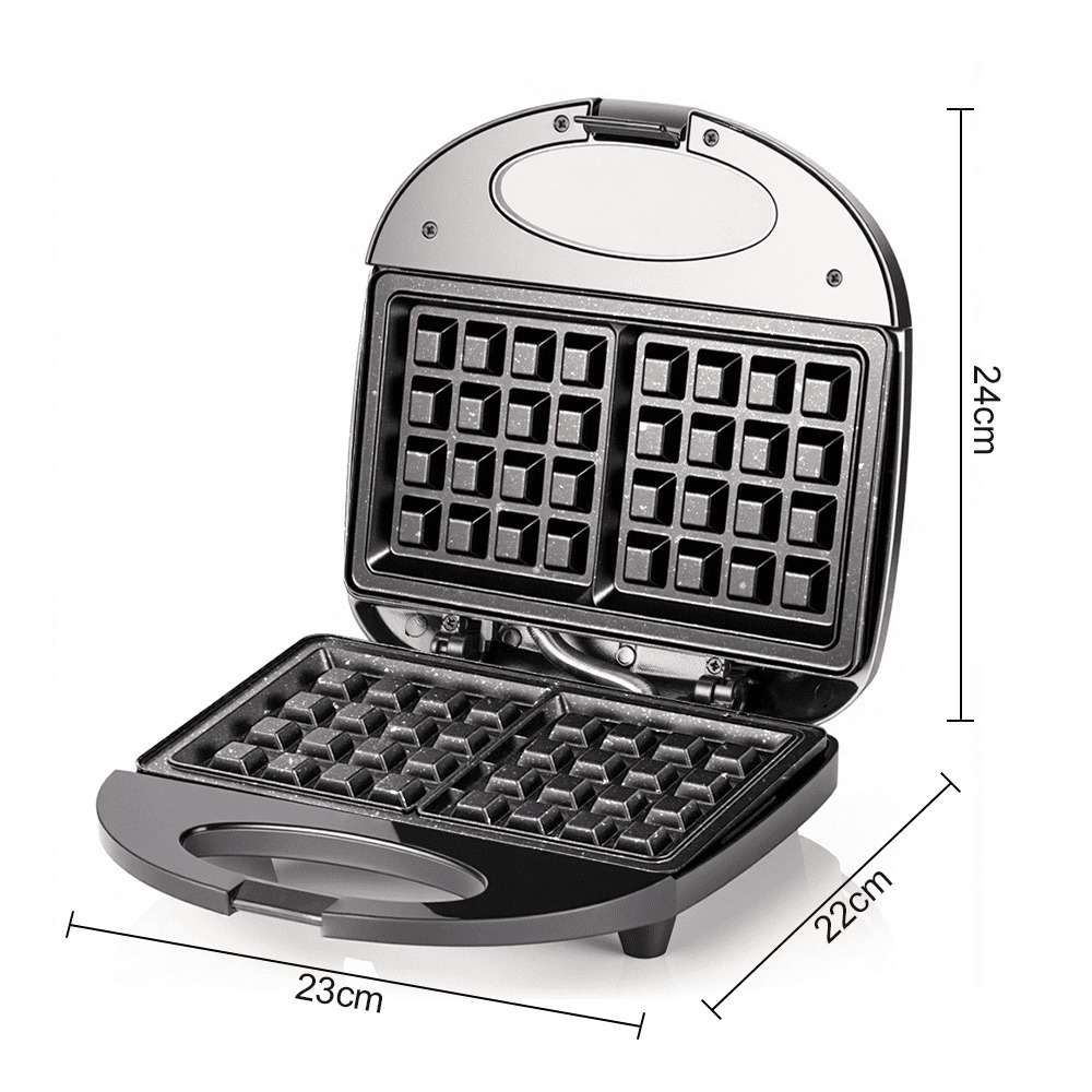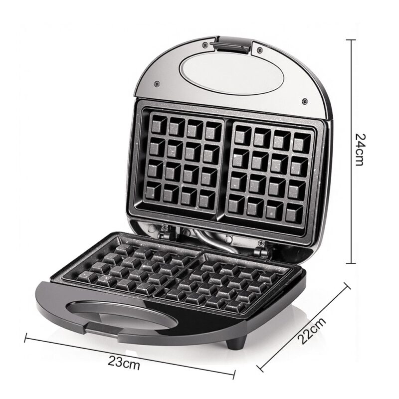 Διαθέτει αντικολλητικές πλάκες τύπου βάφλας που καθαρίζονται εύκολα, ενώ το εργονομικό της σχέδιο με θερμομονωμένη λαβή προσφέρει ασφαλή χρήση. Το συμπαγές της μέγεθος επιτρέπει εύκολη αποθήκευση σε κάθε κουζίνα.