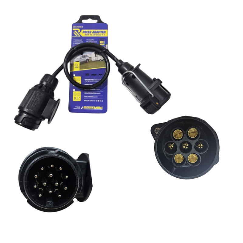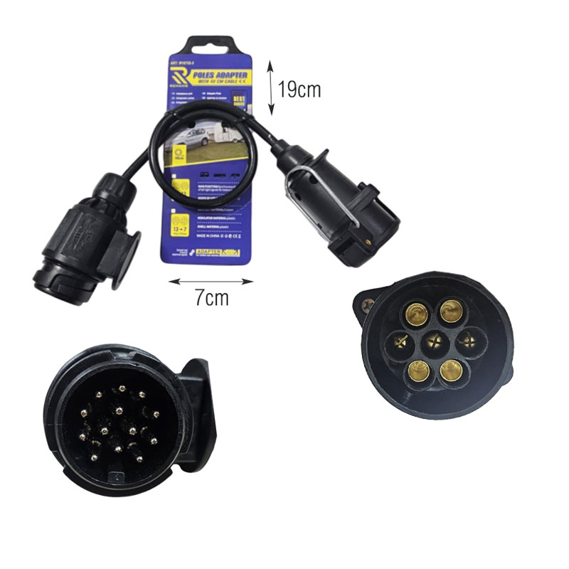 Ο αντάπτορας τρέιλερ 13 πιν σε 7 πιν με καλώδιο μήκους 40cm είναι η ιδανική λύση για τη σύνδεση οχημάτων με διαφορετικούς τύπους πριζών ρεύματος. Σχεδιασμένος για χρήση σε ρυμουλκούμενα, τροχόσπιτα και τρέιλερ, εξασφαλίζει αξιόπιστη και ασφαλή μεταφορά σήματος και ρεύματος μεταξύ οχήματος και ρυμουλκούμενου. Η κατασκευή του από ανθεκτικά υλικά προσφέρει μεγάλη διάρκεια ζωής και αντοχή στις καιρικές συνθήκες. Το εύκαμπτο καλώδιο μήκους 40cm επιτρέπει μεγαλύτερη ευελιξία στη σύνδεση, αποτρέποντας την καταπόνηση των πριζών.