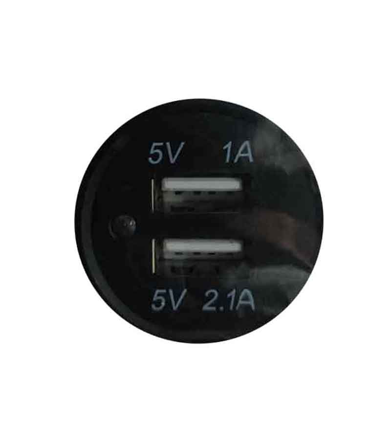 Πρακτικός διπλός φορτιστής USB για αυτοκίνητο, κατάλληλος για ενσωμάτωση σε ταμπλό ή άλλο σημείο του οχήματος. Υποστηρίζει τάση εισόδου 12V–24V και διαθέτει δύο εξόδους USB: 5V/1A και 5V/2.1A, ιδανικές για φόρτιση κινητών, GPS, tablet και άλλων συσκευών. Περιλαμβάνει καπάκι προστασίας για χρήση σε εξωτερικό ή εσωτερικό περιβάλλον.