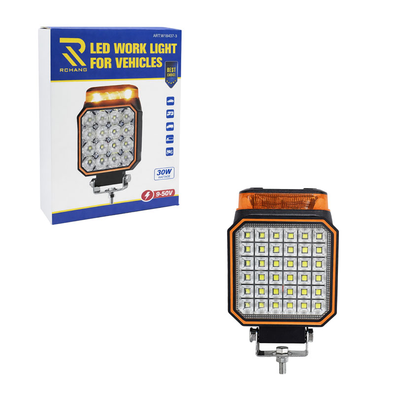 Ισχυρός προβολέας εργασίας LED 30W, ιδανικός για επαγγελματική και αγροτική χρήση σε αυτοκίνητα, φορτηγά, αγροτικά μηχανήματα, τρακτέρ, εκσκαφείς και άλλα οχήματα. Διαθέτει ενσωματωμένο πορτοκαλί φάρο στο επάνω μέρος για αυξημένη ορατότητα και ασφάλεια κατά την εργασία.