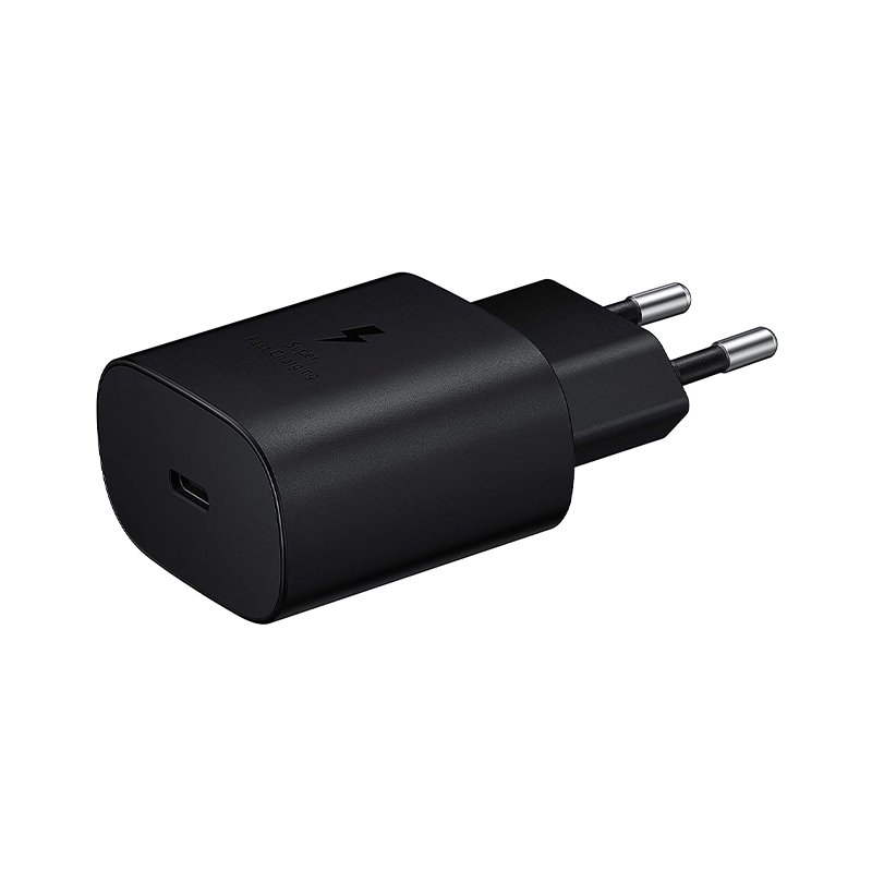 Samsung travel mains charger with USB-C output and a maximum power of 25W.