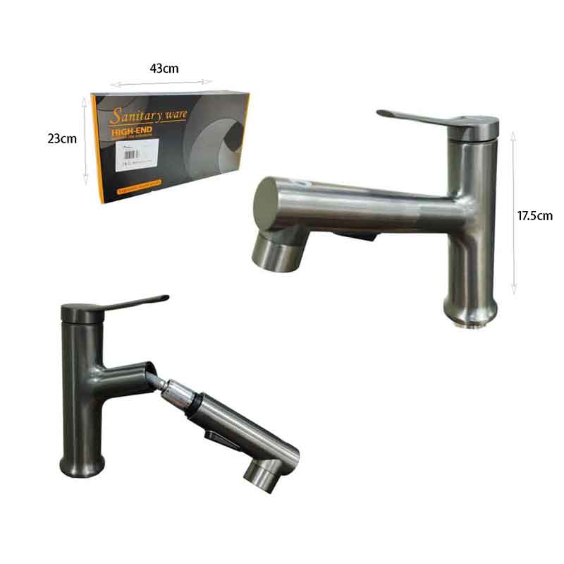 Μοντέρνα και πρακτική μπαταρία μπιντέ με τηλέφωνο ντους, σε inox φινίρισμα υψηλής ποιότητας. Ο μονοκόμματος μοχλός προσφέρει εύκολο έλεγχο της θερμοκρασίας και της ροής του νερού, ενώ το αποσπώμενο τηλέφωνο ντους εξασφαλίζει άνεση και ευκολία στη χρήση. Με ύψος 17,5 cm, είναι ιδανική λύση για κάθε μπάνιο που συνδυάζει κομψότητα και λειτουργικότητα.