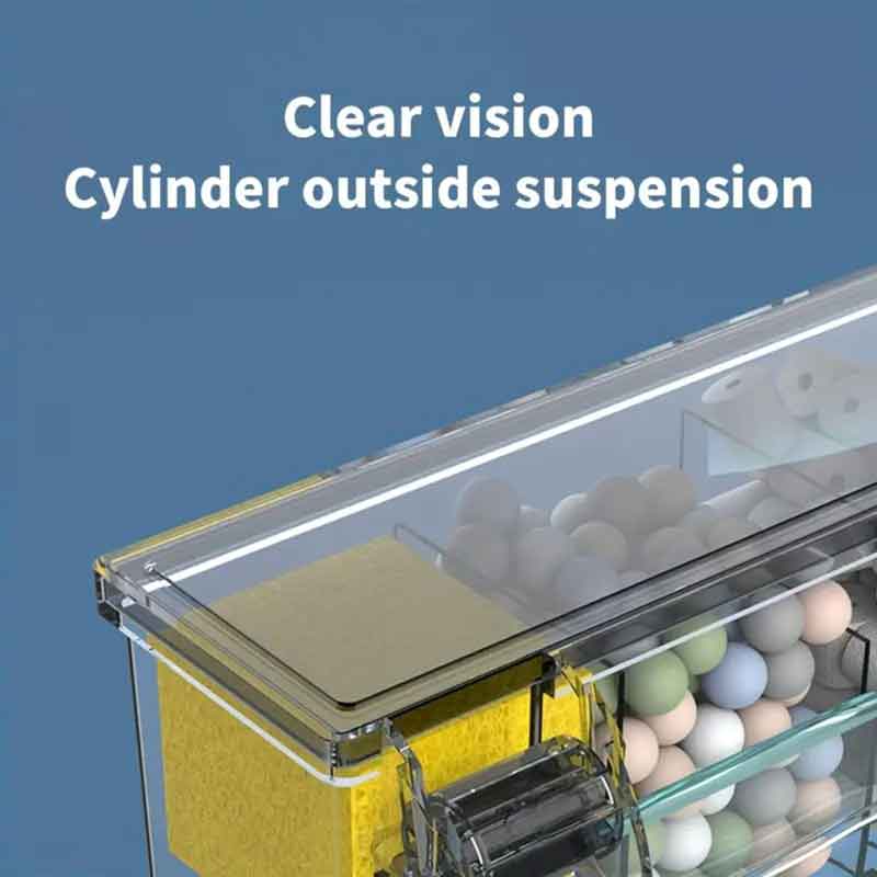 Πολυβάθμια φίλτρανση: περιλαμβάνει σφουγγαράκια, bio‑rings και κεραμικές μπάλες για αποτελεσματική μηχανική και βιολογική φιλτράνση.