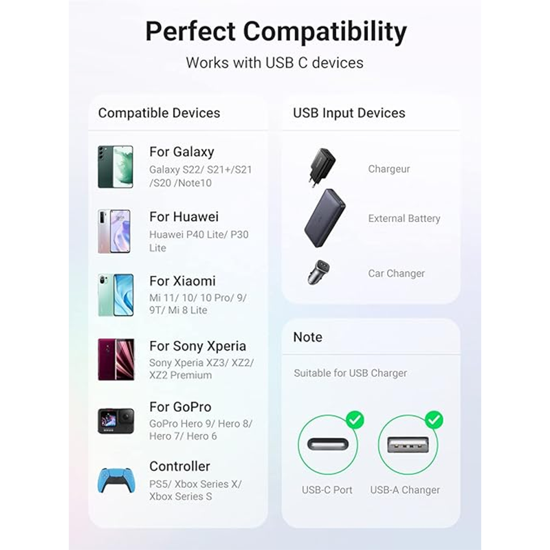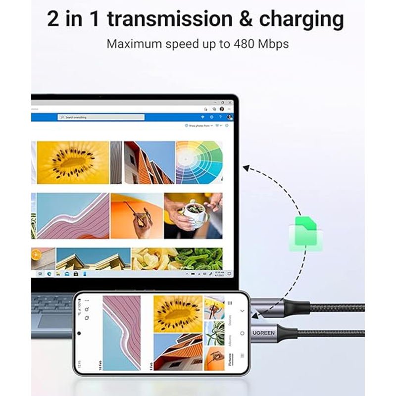 Καλώδιο USB-A σε USB-C υψηλής ποιότητας UGREEN US288 σχεδιασμένο για γρήγορη φόρτιση και μεταφορά δεδομένων μεταξύ διαφορετικών συσκευών. Συμβατό με ένα ευρύ φάσμα συσκευών, όπως smartphone, tablet, φορητούς υπολογιστές και άλλα.
