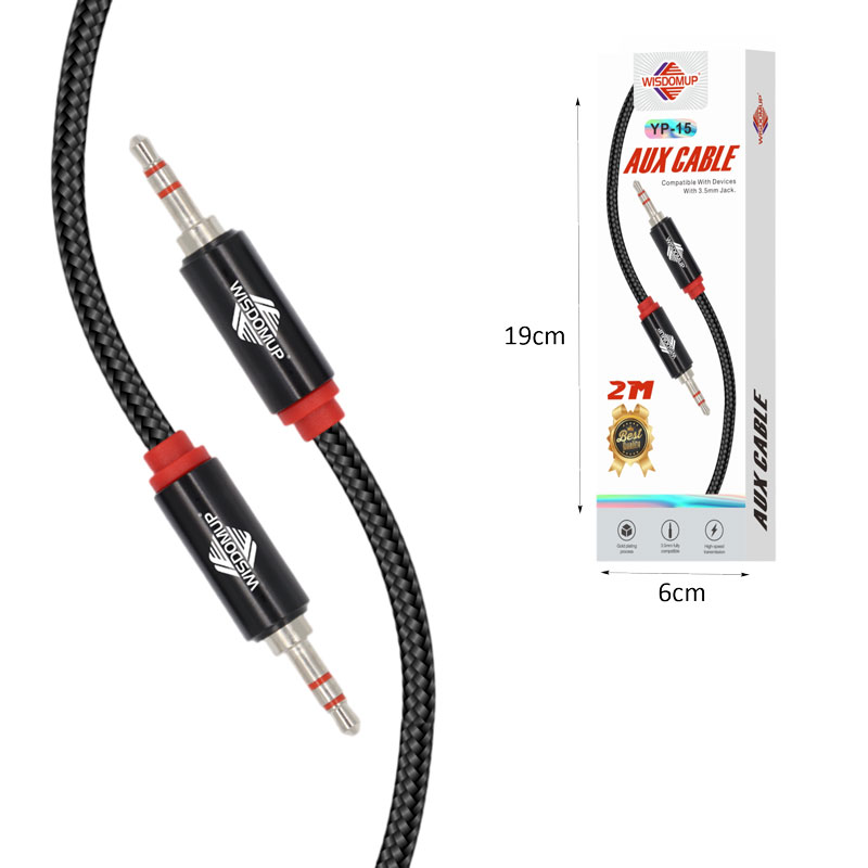Ανθεκτικό καλώδιο ήχου AUX 3.5mm μήκους 2 μέτρων, ιδανικό για σύνδεση κινητών τηλεφώνων, tablet, laptop και συστημάτων ήχου όπως ηχεία ή στερεοφωνικά αυτοκινήτου. Προσφέρει καθαρή και σταθερή μετάδοση ήχου για μουσική και κλήσεις χωρίς παρεμβολές.