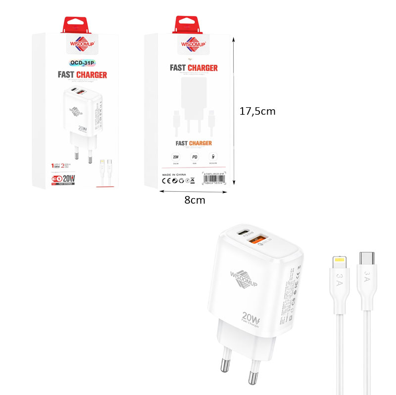 Αποκτήστε γρήγορη και αξιόπιστη φόρτιση με τον ταχυφορτιστή 20W, ο οποίος διαθέτει θύρες USB-C και USB για ταυτόχρονη ή εναλλακτική χρήση. Υποστηρίζει τεχνολογία γρήγορης φόρτισης, εξασφαλίζοντας ταχύτερη αναπλήρωση ενέργειας για τις συσκευές σας.