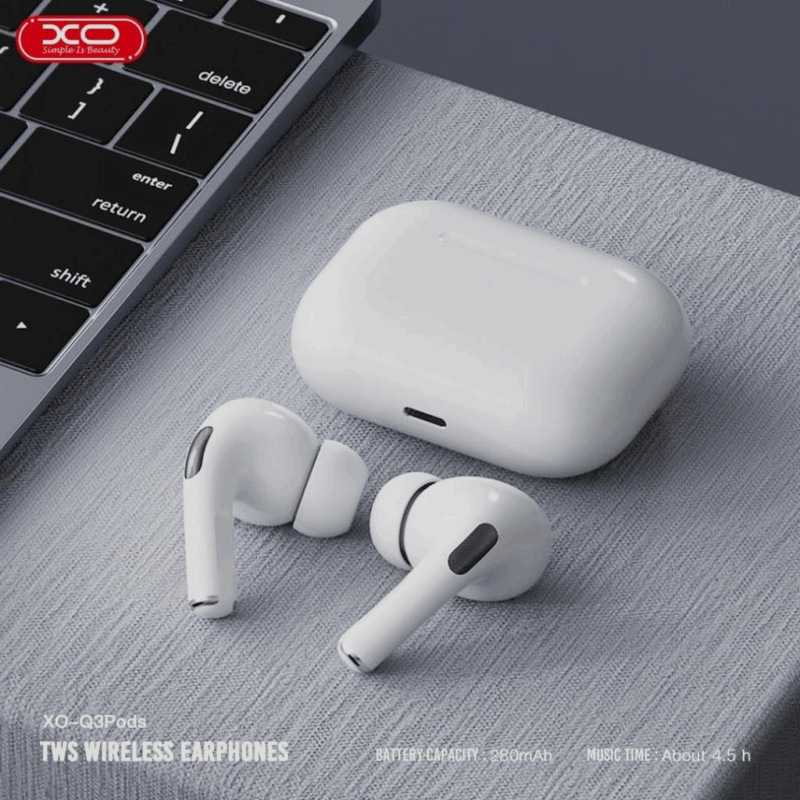 Το XO Q3 Pods (3η γενιά) είναι ένα σετ ακουστικών bluetooth 5.3 TWS με κουτί φόρτισης. Τα ακουστικά υποστηρίζουν την τεχνολογία TWS (True Wireless Stereo) – και τα δύο ακουστικά συνδέονται μεταξύ τους για να σχηματίσουν ένα ασύρματο στερεοφωνικό σετ.