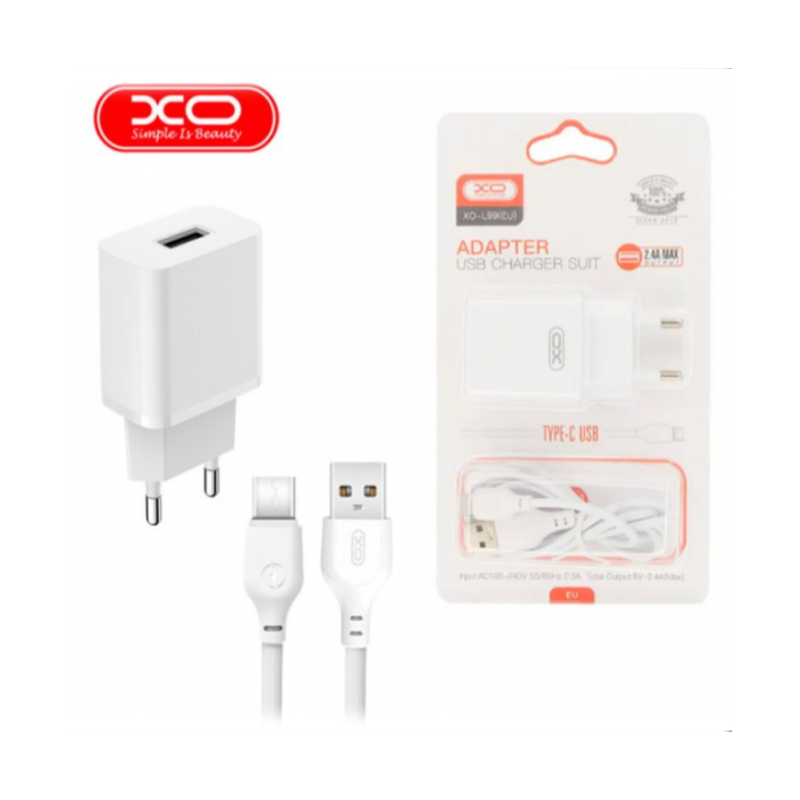 XO – L99 wall charger USB 2,4A + MicroUSB cable white